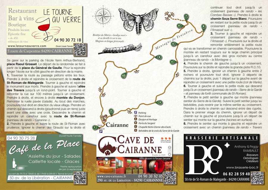 La randonnée de Cairanne Le dépliant est disponible en libre service chez les partenaires et à l'office de tourisme de Vaison la Romaine. Cliquez sur les partenaires pour les découvrir...